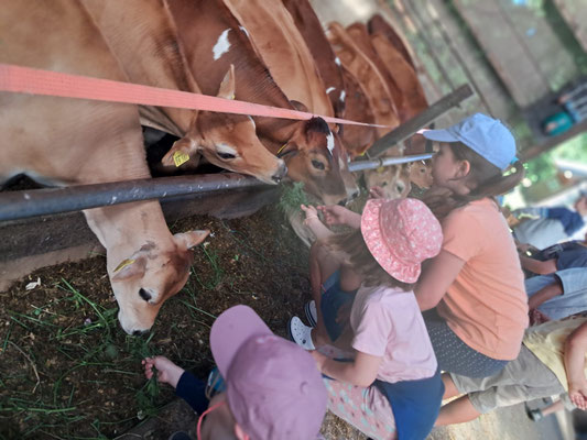 Die Kinder hörten sehr aufmerksam zu und erfuhren unter anderem, dass die Kuh nur vertraute Tiere an ihre Jungen ranlässt. Sie lernten ebenfalls, dass die Kuh vier Mägen hat.