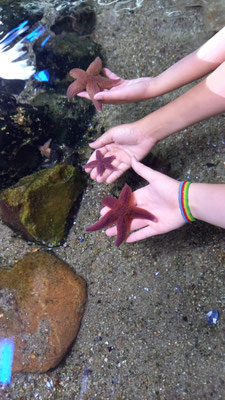 Quallen, Garnelen, Krebse, kleine Schollen und sogar einen Seestern fischten die Kinder der 4b mit ihren großen und kleinen Keschern aus der Ostsee.