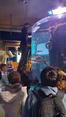 Anschließend hatten die Kinder noch die Gelegenheit, sich in der Ausstellung umzusehen und im Wasserbecken auf Tuchfühlung mit den Tieren zu gehen.